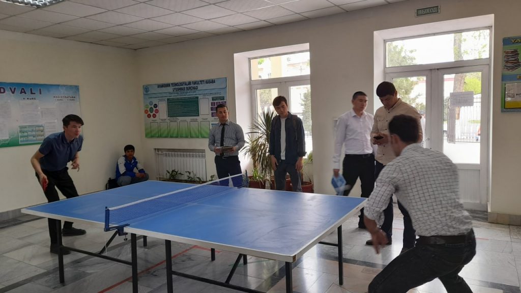 Talaba-yoshlarning bo‘sh vaqtlarini mazmunli tashkil etish va ularning sportga bo‘lgan qiziqishlarini yanada oshirish maqsadida 5 ta muhim tashabbus bo‘yicha sport haftaligi o‘tkazilmoqda. 7-aprel kuni fakultetda sportning stol tennisi turi bo‘yicha sport musobaqasi tashkil etildi. Ishtirokchilar orasidan g‘olib va sovrindorlar aniqlandi.